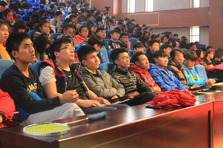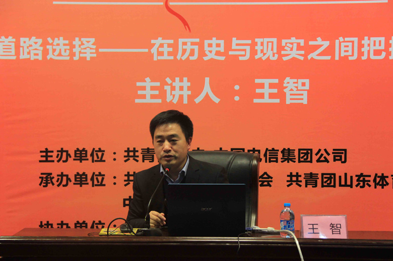 11月12日下午,由共青团中央主办、共青团山东省委承办的“与信仰对话,青春飞young中国梦”精品报告会在山东体育学院一号教学楼四层报告厅举行。武汉理工大学马克思主义学院副院长、博士生导师王智教授做了题为《思想论证与道路选择——在历史与现实之间把握政治逻辑》的报告,与到场老师和同学们分享了自己的理论成果和见解。山东体育学院党委副书记、纪委书记张云龙、团委书记周孟祥及部分团总支书记与到场的300名同学共同聆听了报告。报告会由山东体育学院团委副书记杨蕾主持。